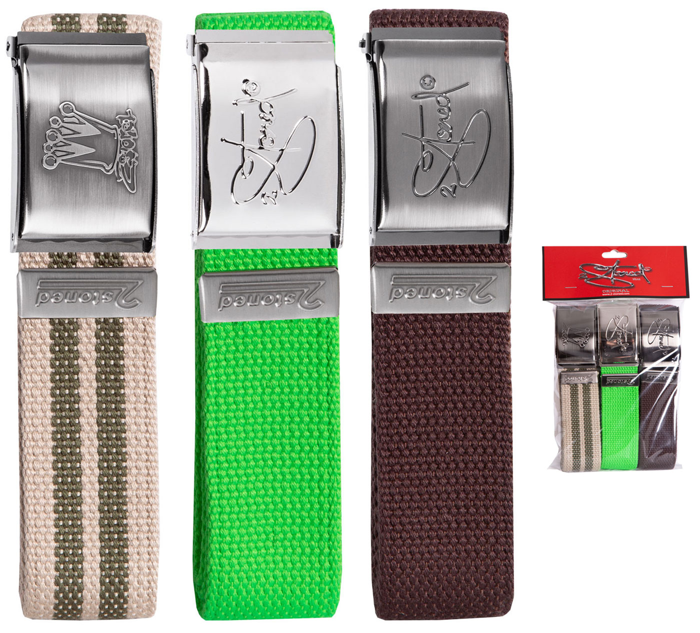 Logoart / Motivart: Logo auf Schnalle geprägt oder gestanzt, Farbe: Beige-Olive, Neon Grün, Braun Logo/Motiv: Classic, Crown, Logo