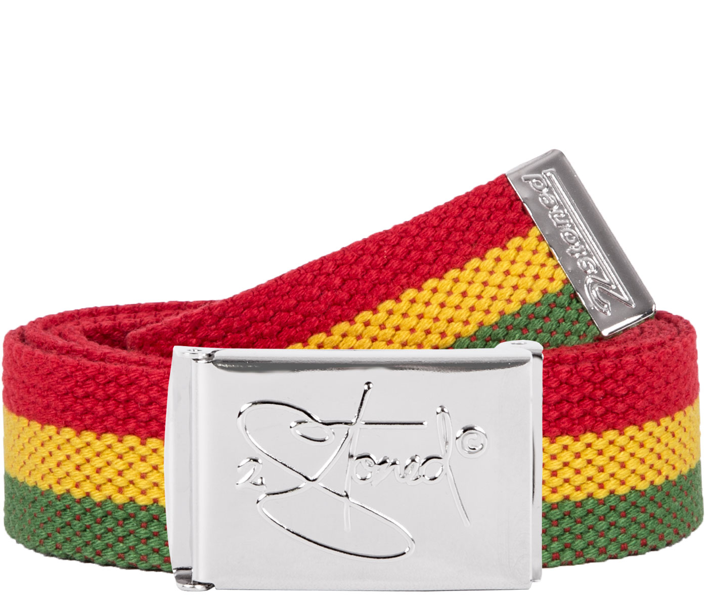 Ein dreifarbiger Gürtel im Classic Chrome Style mit Chromschnalle und geprägtem Logo - Stoffgürtel Original 2-stoned wear